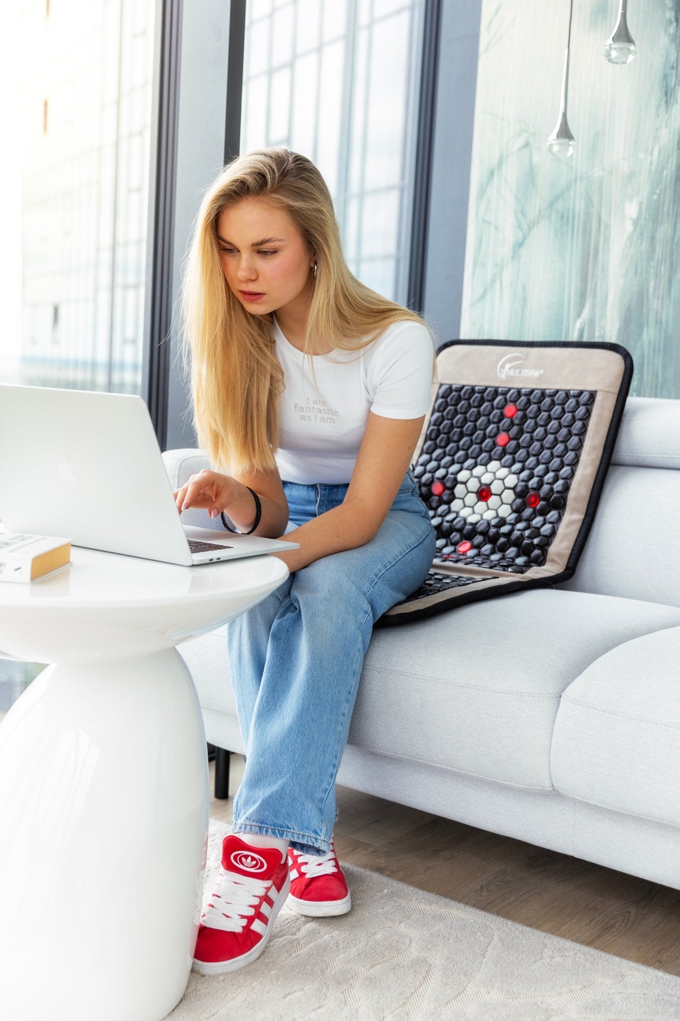 Die MultiSpa® Sitzmatte bietet dir eine platzsparende und einfache Lösung für Teilkörperanwendungen, egal wo du dich befindest. Ob zu Hause im Sessel, auf der Couch, am Esstisch, im Bett, im Büro, im Wohnmobil oder unterwegs – die Sitzmatte passt sich perfekt an deinen Alltag an. Ihr ergonomisches Design sorgt für maximalen Komfort und unterstützt dich effektiv bei einer gesunden Sitzhaltung.