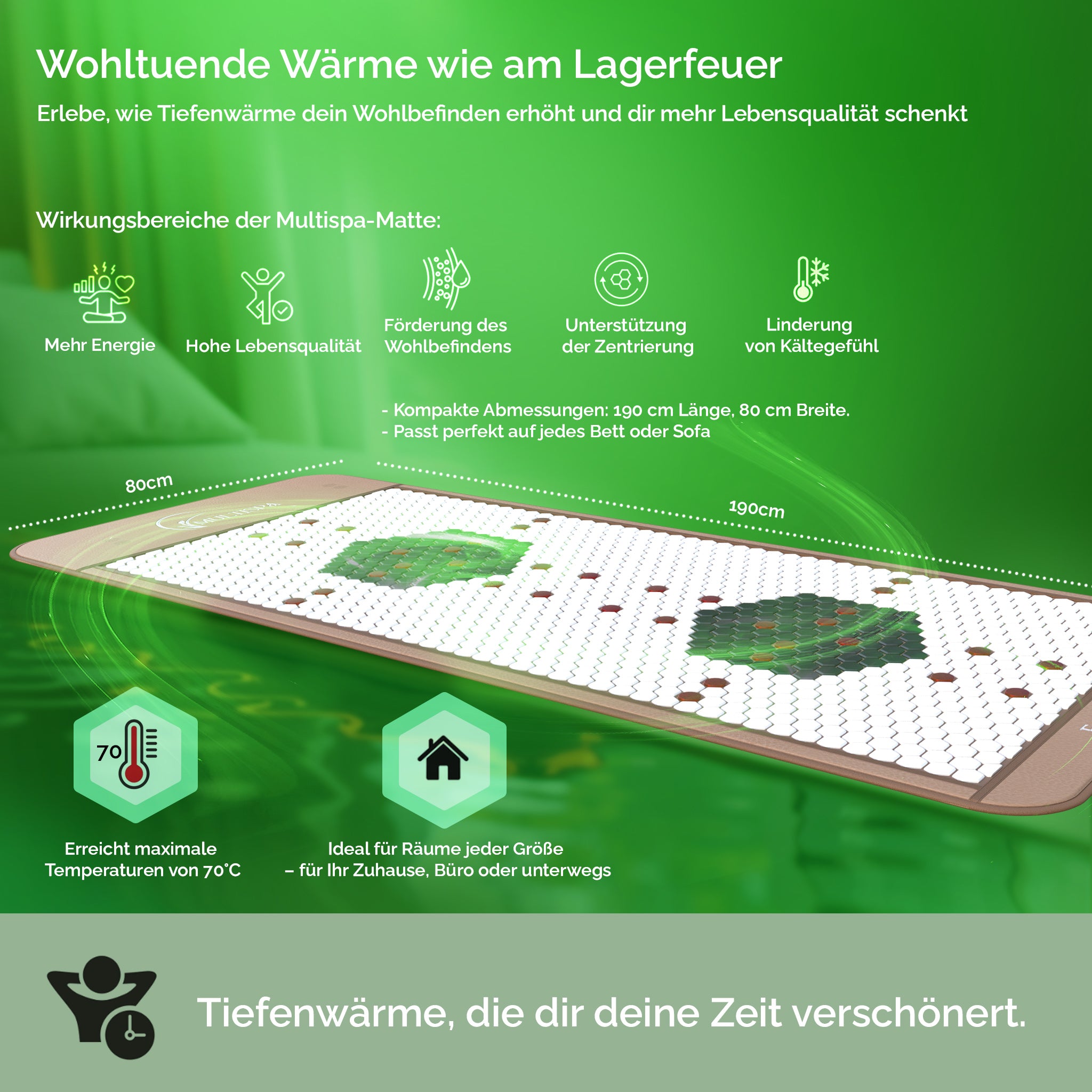 - Temperaturbereich der Matte: 30°C - 70°C